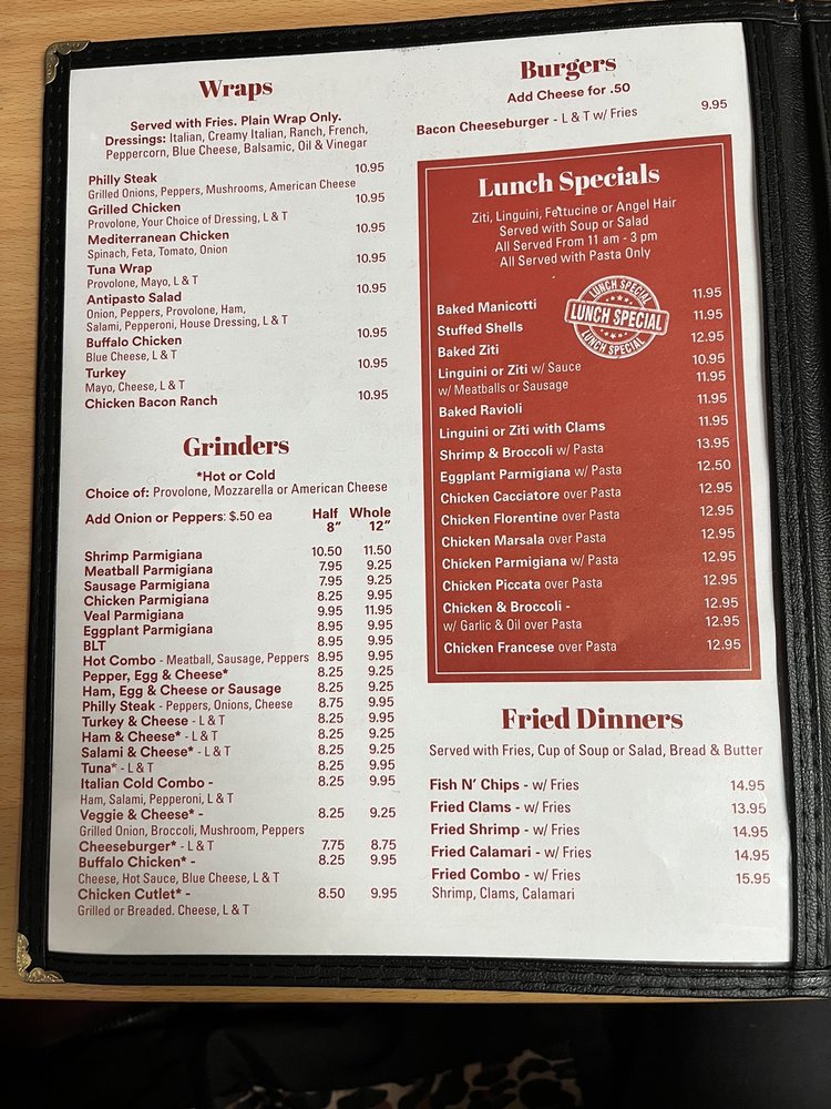 “ We stumbled upon Litchfield Pizza when touring New England. Dont be put off by the appearance its a pizza parlor after all, with the fluorescent lights to prove it. But the menu is broad and varied, and the prices are reasonable. The daily soup was chicken with orzo. It was fabulous perfectly seasoned, with handshredded pieces of chicken and savory broth. My wife ordered ziti with white clam sauce and I had the meatball grinder. She loved her pasta, and shes really picky. The clams were freshly sauteed and the pasta was perfectly cooked. The grinder was the best Ive had. The soft roll soaked up the marinara but didnt fall apart, the meatballs were nicely seasoned but not spicy, and the marinara was delicious. No beer, wine or liquor sold here, unfortunately. But the foods good enough to make up for it. Im a bit snobby about food but Ill tell you, if youre ever in Litchfield, dont miss eating here. ”